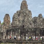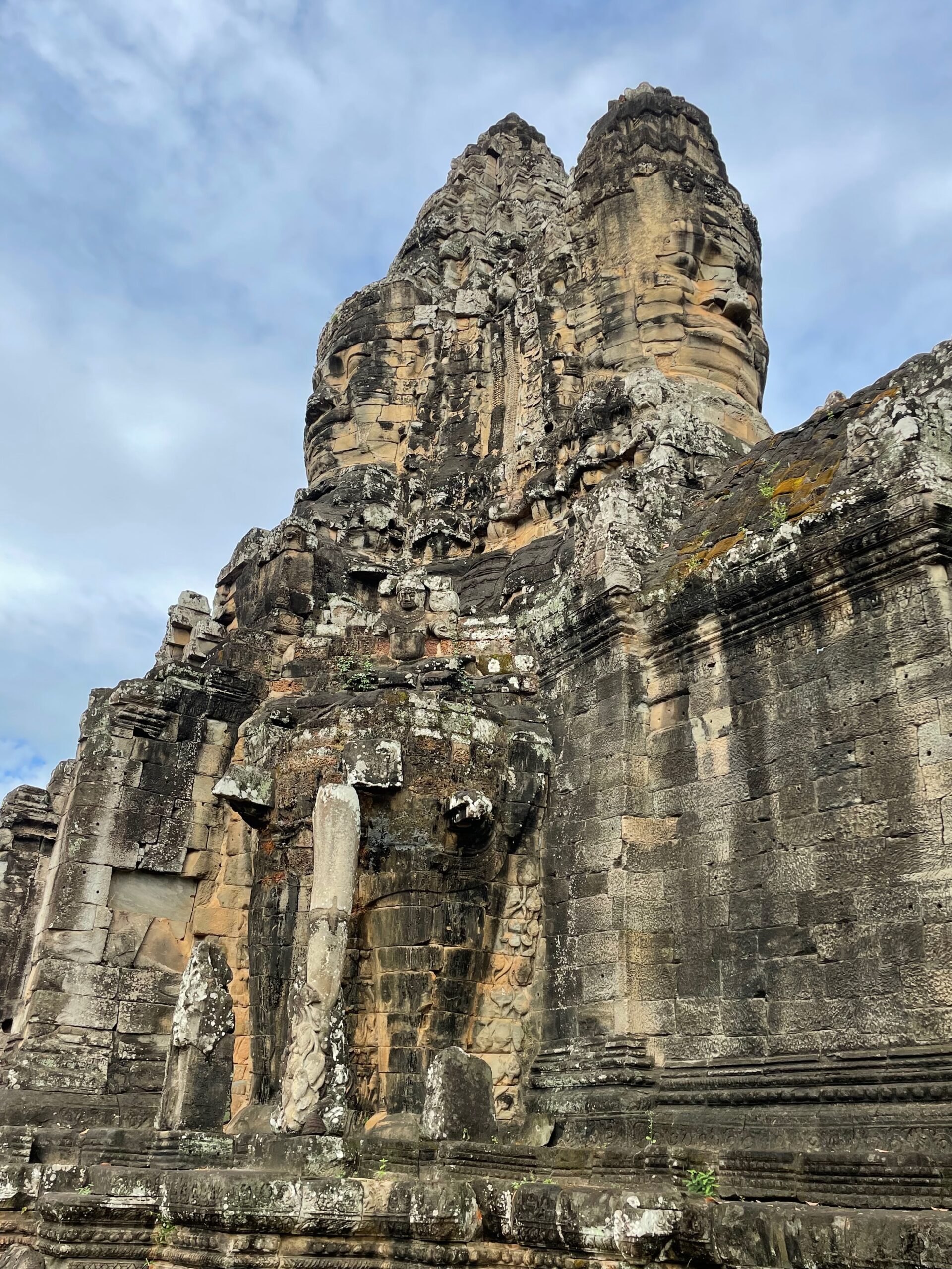 Este templo está en el centro de Angkor Thom, la ciudad amurallada. Lo reconocerás por sus 54 torres decoradas con más de 200 rostros sonrientes, posiblemente del propio rey Jayavarman VII, identificándose con el Bodhisattva de la compasión.