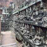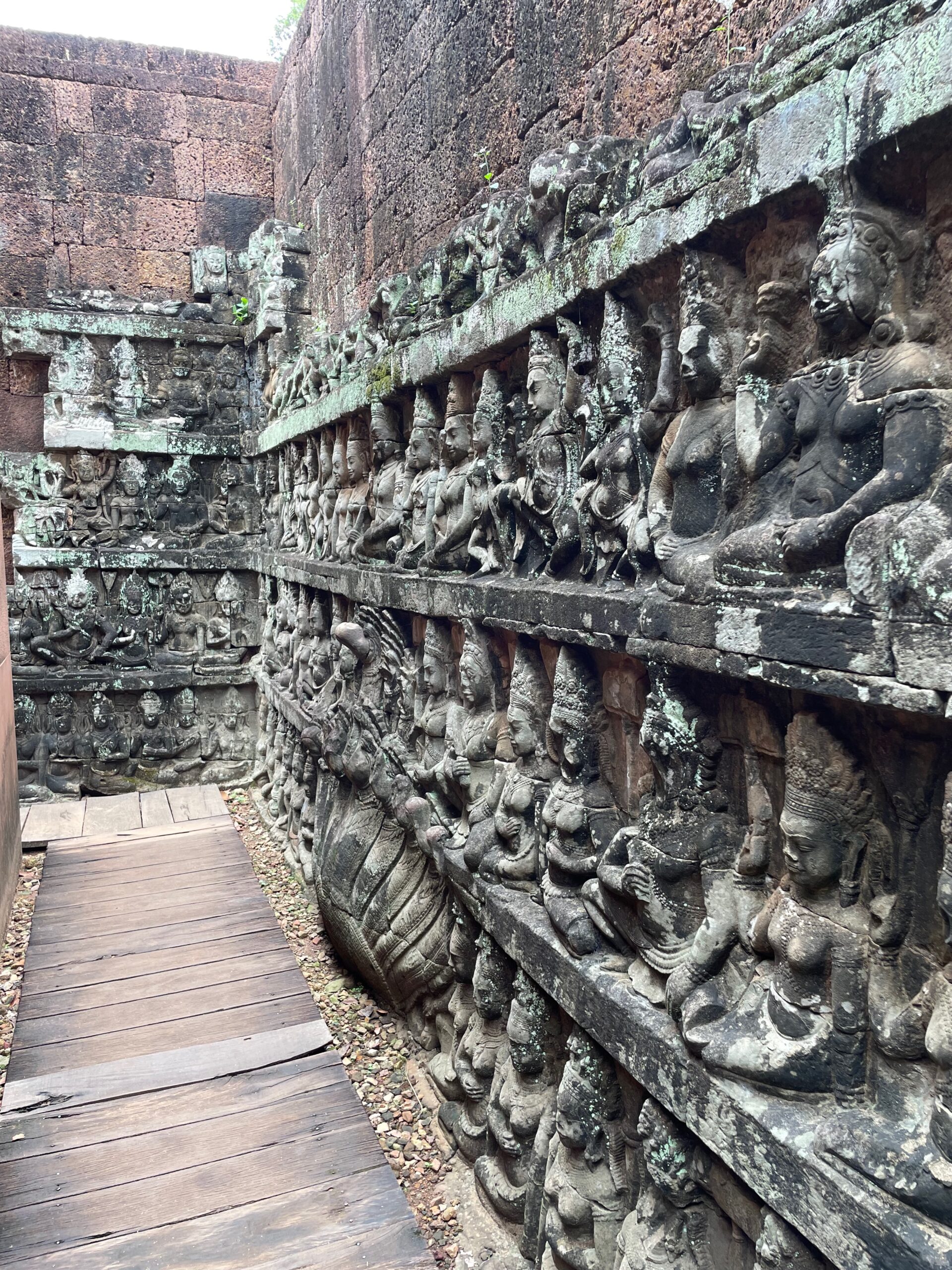Diseñado como un mandala, cada nivel representa un plano del universo. Sus torres representan el Monte Meru, el eje del cosmos. El santuario central estaba reservado al rey y a los sacerdotes. Los bajorrelieves del muro sur son de lo más impresionante: muestran la Batalla de Kurukshetra y la Agitación del océano de leche, donde los dioses y demonios crean el néctar de la inmortalidad.