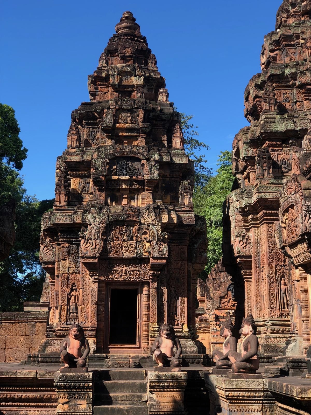 Conocido como el «templo de las mujeres», aunque probablemente lo construyeron hombres, se distingue por su arenisca rosa y por relieves finísimos que parecen tejidos en piedra. Es pequeño en escala pero inmenso en detalle.
