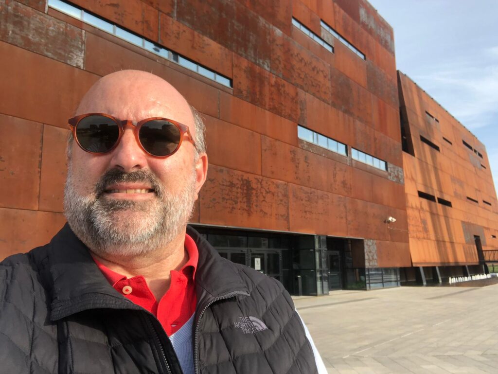 El edificio en sí ya es impresionante, con forma de casco de barco oxidado, un guiño a los astilleros.